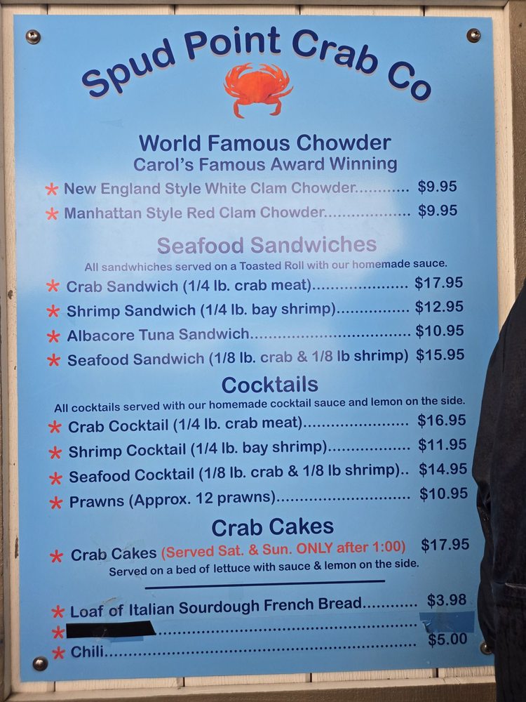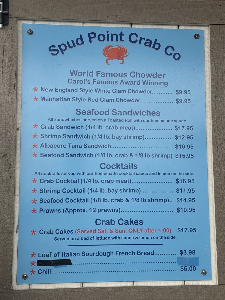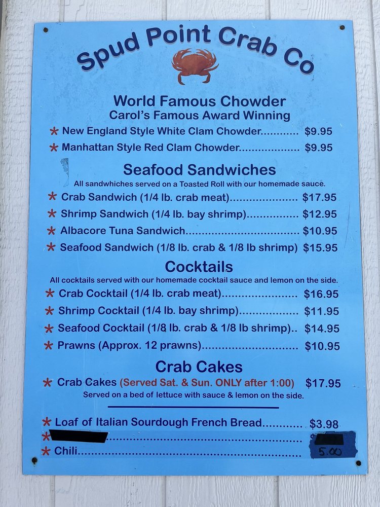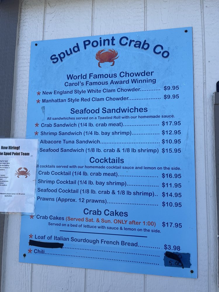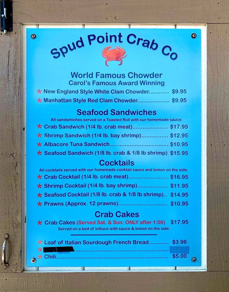 Introducing the menu at Spud Point Crab Company, a casual spot located in Bodega Bay, CA. This seafood haven offers a variety of dishes including clam chowder, grilled oysters, crab sandwiches, and Portuguese fish stew. The red clam chowder stands out with its tomato base and hint of spice. Customers rave about the flavorful dishes, while some suggest minor improvements like adding cucumbers or pickles to sandwiches. The small menu doesn't disappoint, with fresh seafood options and quick service. Spud Point Crab Company is known for its award-winning clam chowder and charming outdoor seating area. Enjoy a taste of the coast with their delicious offerings.